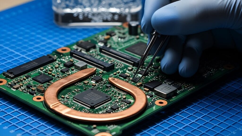 Powering a wet laptop can cause an instant short circuit, especially in sensitive areas like the motherboard. Even brief contact between water and live circuits is enough to damage essential components such as the CPU, GPU, or RAM. These are not only expensive parts to replace but also critical to the overall performance of your device.
